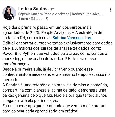 Contamos com cursos desde o Excel para RH, passando pelo People Analytics ao vivo, até o curso gravado de Indicadores de RH, oferecendo uma trilha completa para elevar o nível técnico e estratégico do profissional.