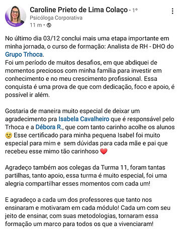 Toda essa experiência — acompanhando de perto as demandas reais das organizações e os desafios enfrentados por quem atua em RH — deu origem ao método Trhoca: prático, aplicável e orientado para resultados concretos na carreira.